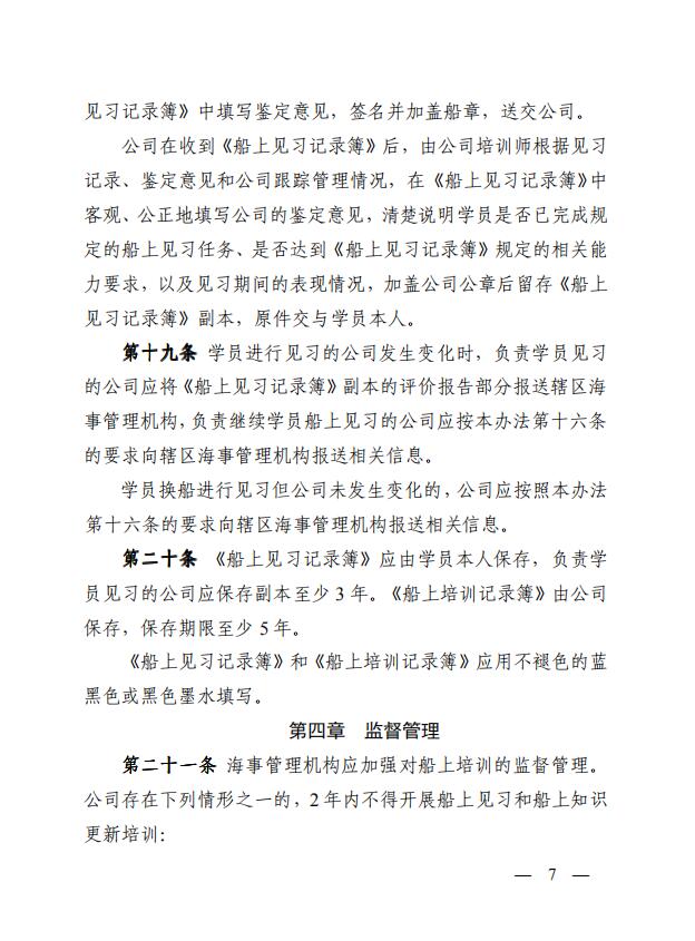 中華人民共和國(guó)海事局關(guān)于印發(fā)《中華人民共和國(guó)海船船員船上培訓(xùn)管理辦法》的通知