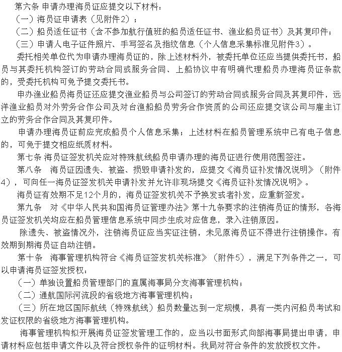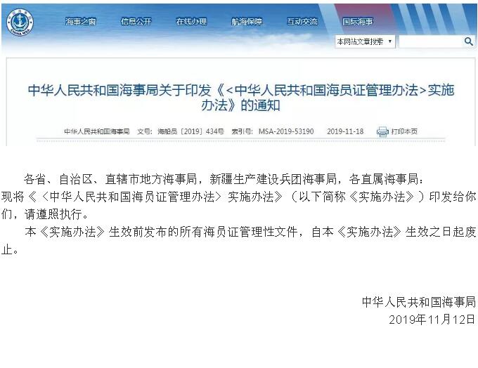 《<中華人民共和國(guó)海員證管理辦法>實(shí)施辦法》 2019年12月20日起施行!